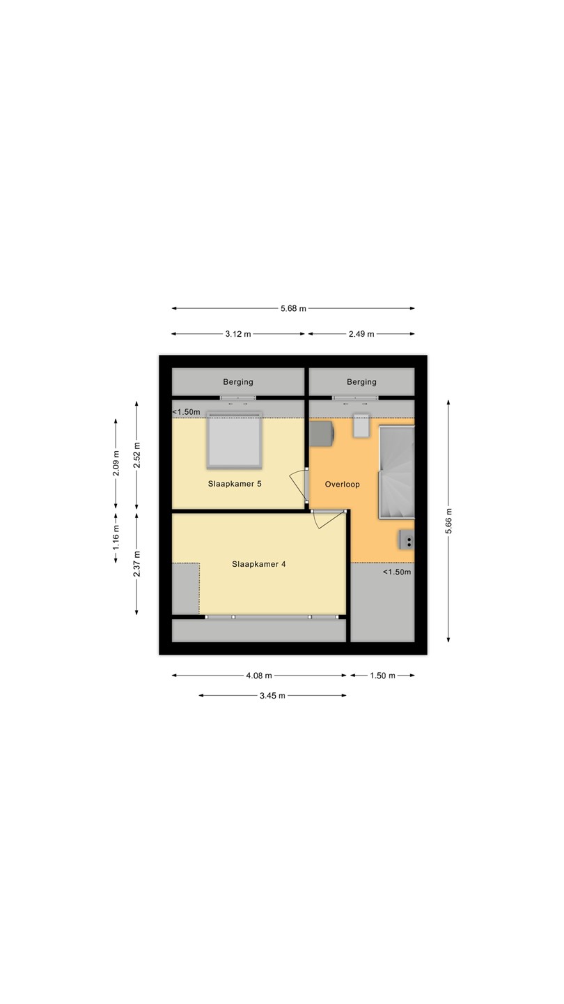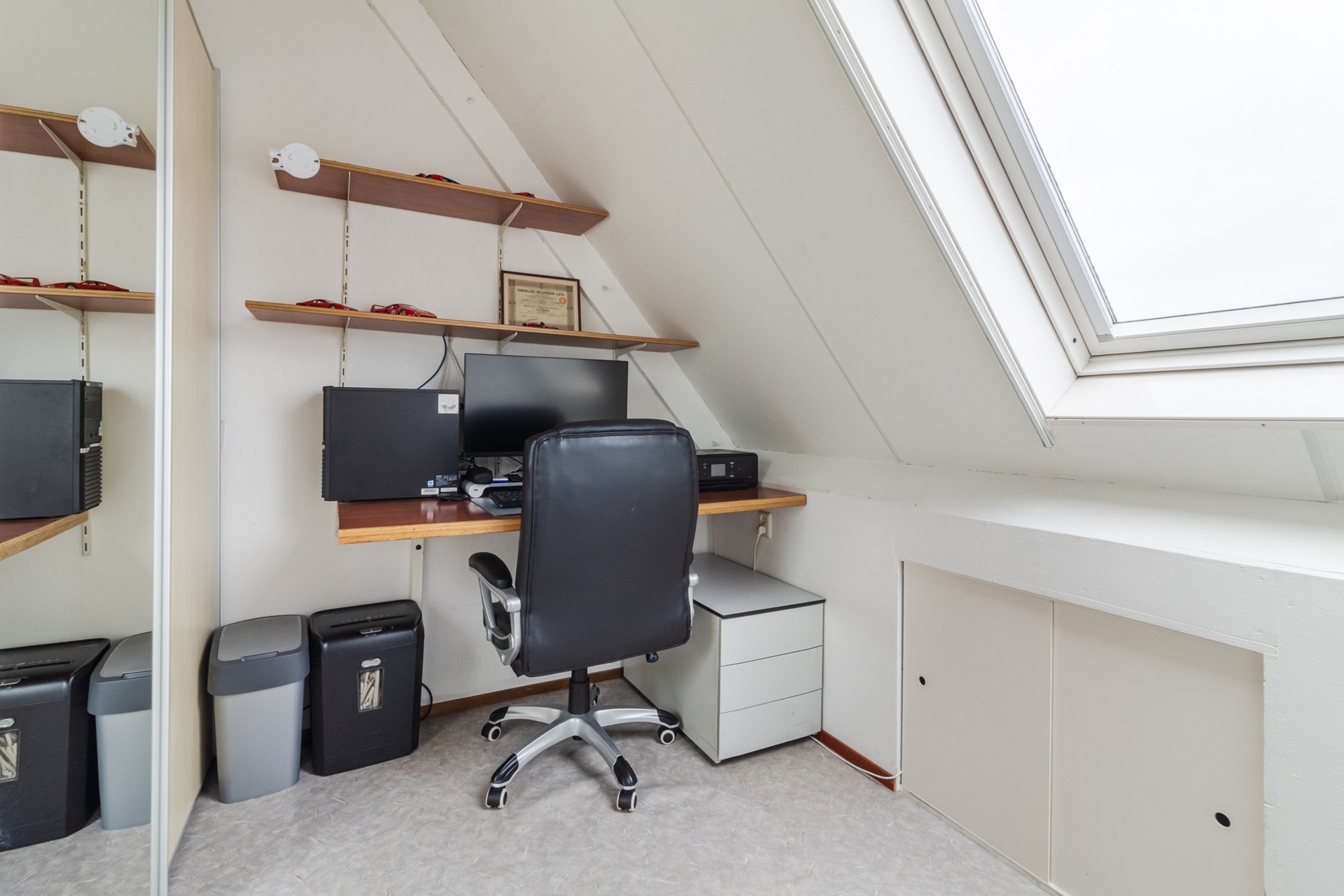 Bereikbaar met vaste trap, voorzolder met cv-opstelling en berging achter de knieschotten en twee slaapkamers en dakkapel aan de voorzijde.